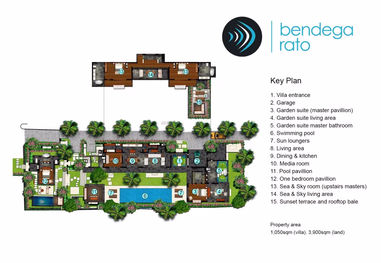 La Villa Bendega Rato recibe a sus huéspedes con antiguas puertas javanesas que conducen a un tradicional estanque de carpas koi antes de entrar en este santuario privado. La villa cuenta con una sala de estar y comedor de doble altura con techos altos, que se abren a un exuberante jardín tropical y a una piscina de piedra de 18 metros. Un balé junto a la piscina, equipado con un bar antiguo y una gran mesa para diez personas, es el lugar perfecto para relajarse, mientras que una sala multimedia con los mejores equipos de audio y video ofrece entretenimiento de primera clase. En la planta superior, una terraza y un balé en la azotea brindan vistas panorámicas de las legendarias puestas de sol de Bali.
